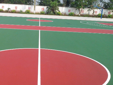 施工流程:先清理屋面基层(找平、修补裂缝)→ 涂刷双层防水(基层防水 + 节点密封,重点处理女儿墙、管道根部)→ 铺设防潮隔离层→ 弹性地坪施工(分涂底涂、中涂、面涂,每道工序干透后再施工)→ 划设运动标线(预留安全边界)。